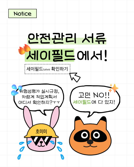 세이필드를 통해 안전 관련 주요 소식을 한 번에 확인하고, 서류 작성까지 편리하게 이용하실 수 있으니