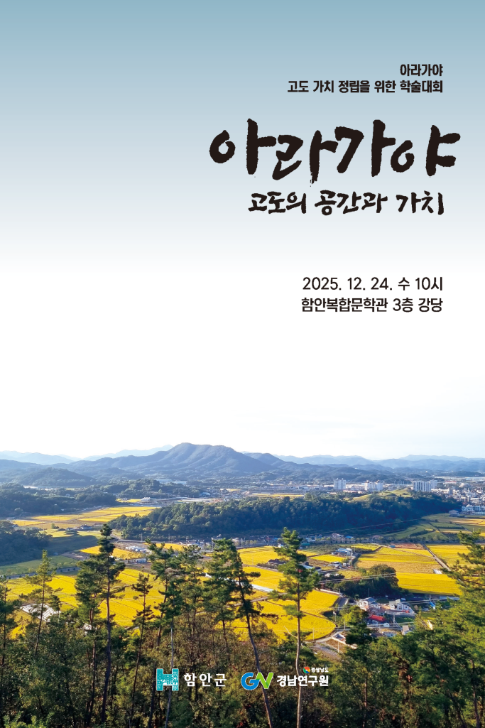 함안군과 경남연구원은 아라가야 연구의 지평을 넓히고 함안의 미래 비전을 세워가고자 다음과 같이 학술대회를 개최합니다.