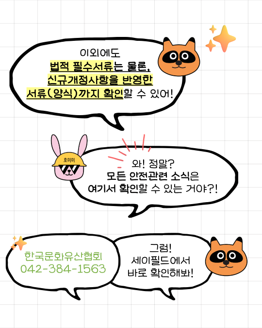 세이필드에서는 발굴현장에서 작성해야 하는 법정 필수서류는 물론,