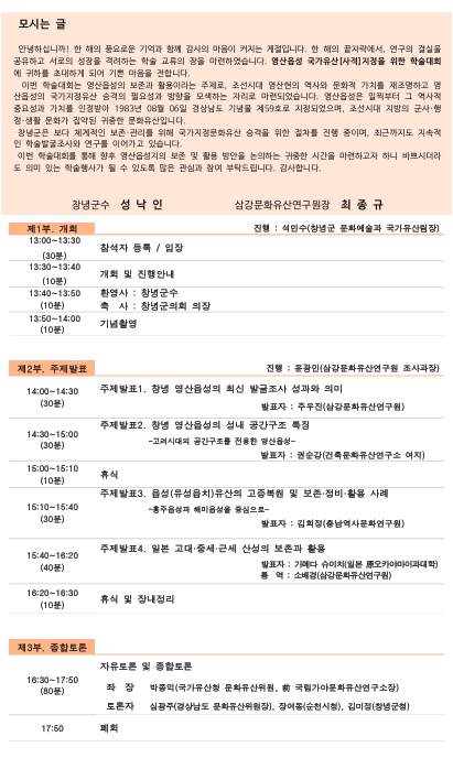행사명: 국가유산[사적]지정을 위한 학술대회 영산읍성의 보존과 활용